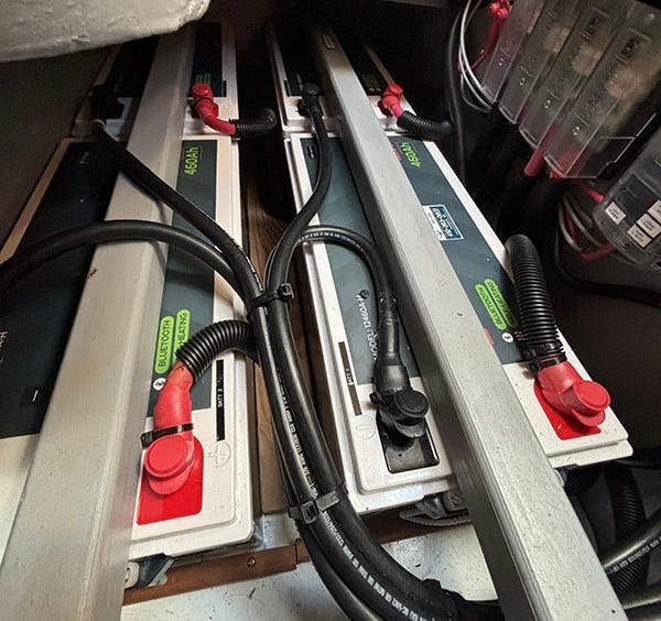 More Storage Capacity – we want to store more usable energy in our battery banks, ideally enough to get through at least a full day on the water. It’s common to have a 400 amp-hour lead-acid battery bank today, but you can’t use all that capacity. Let’s target capacity of at least 300 amp-hours.